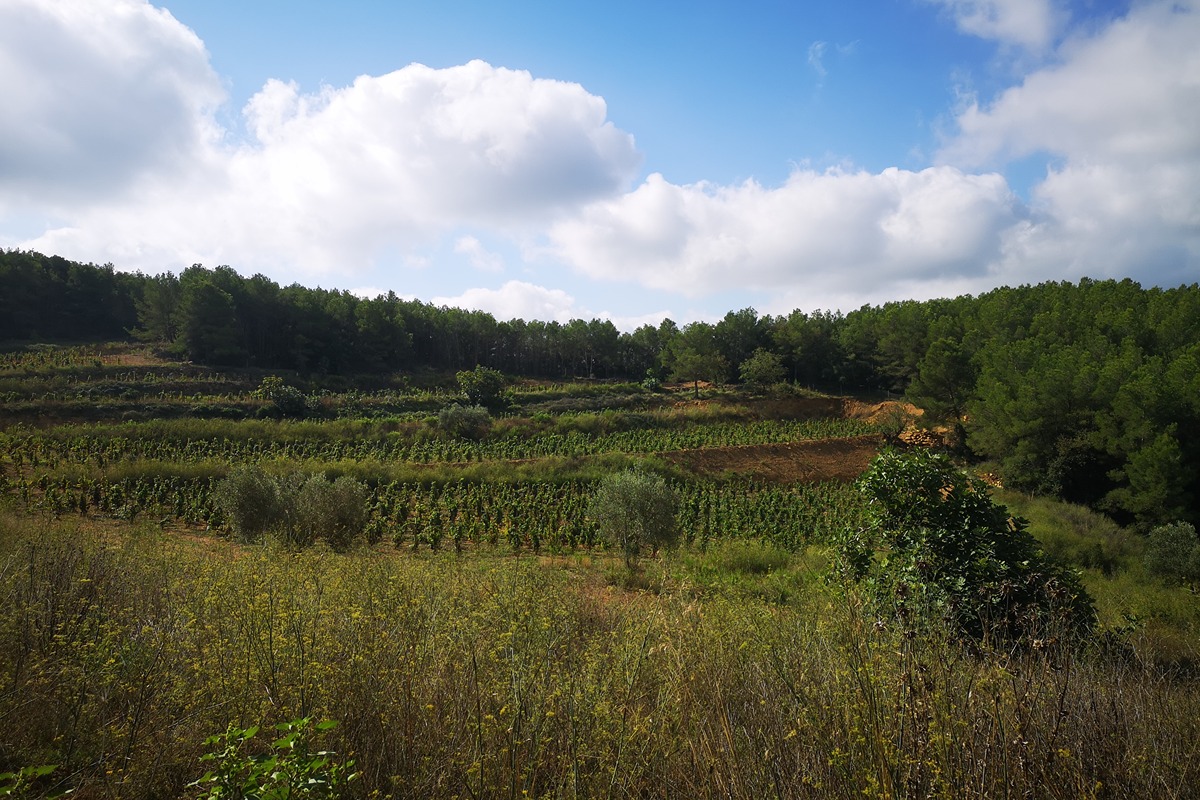 La finca té 400 hectàrees i la majoria són de bosc. Vint d’aquestes són aptes per al conreu de la vinya, tres ja s’han plantades però encara no es vinifiquen i només deu estan en producció.